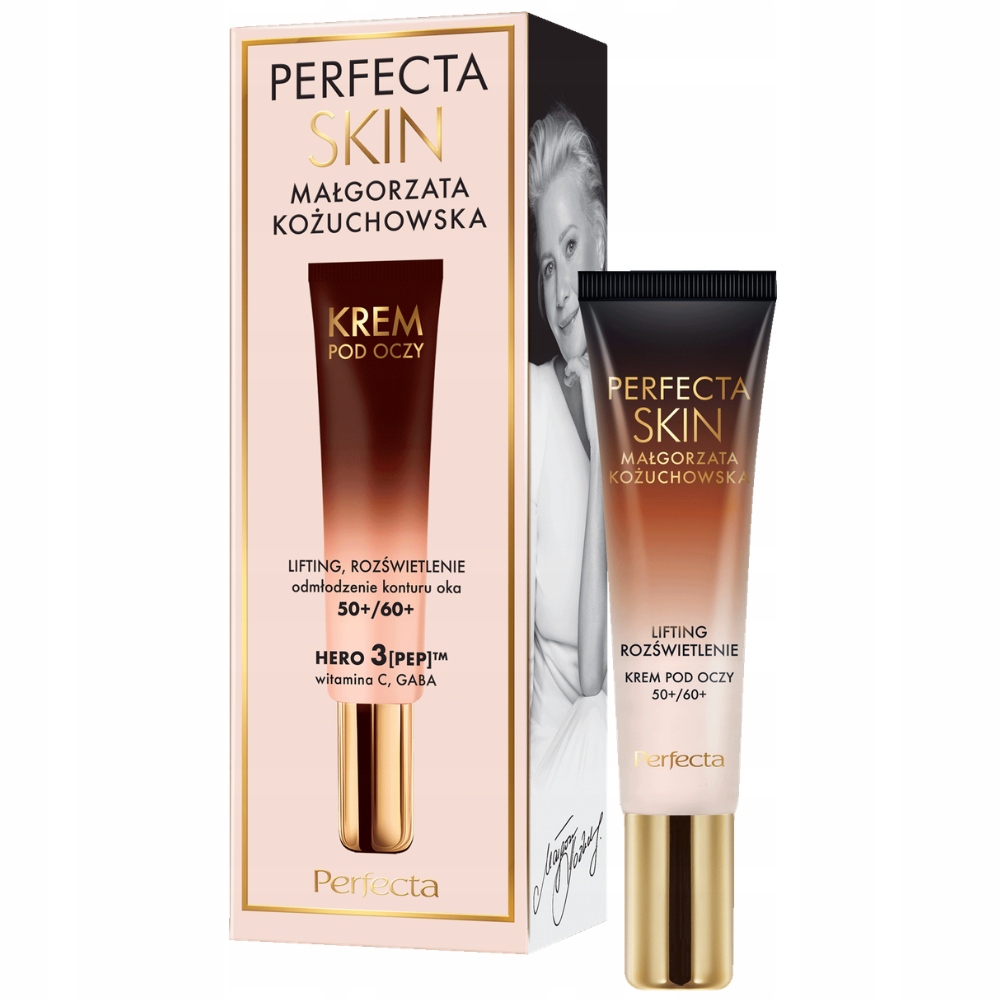 Liftingująco-rozświetlający krem Perfecta Skin Małgorzata Kożuchowska pod oczy zawiera zaawansowane składniki aktywne, które skutecznie redukują widoczność zmarszczek oraz worków, jednocześnie nawilżając delikatną skórę wokół oczu. Odżywcza moc kremu pod oczy intensywnie regeneruje skórę, przywracając jej naturalną gładkość i blask, by Twoje spojrzenie promieniało zdrowiem.