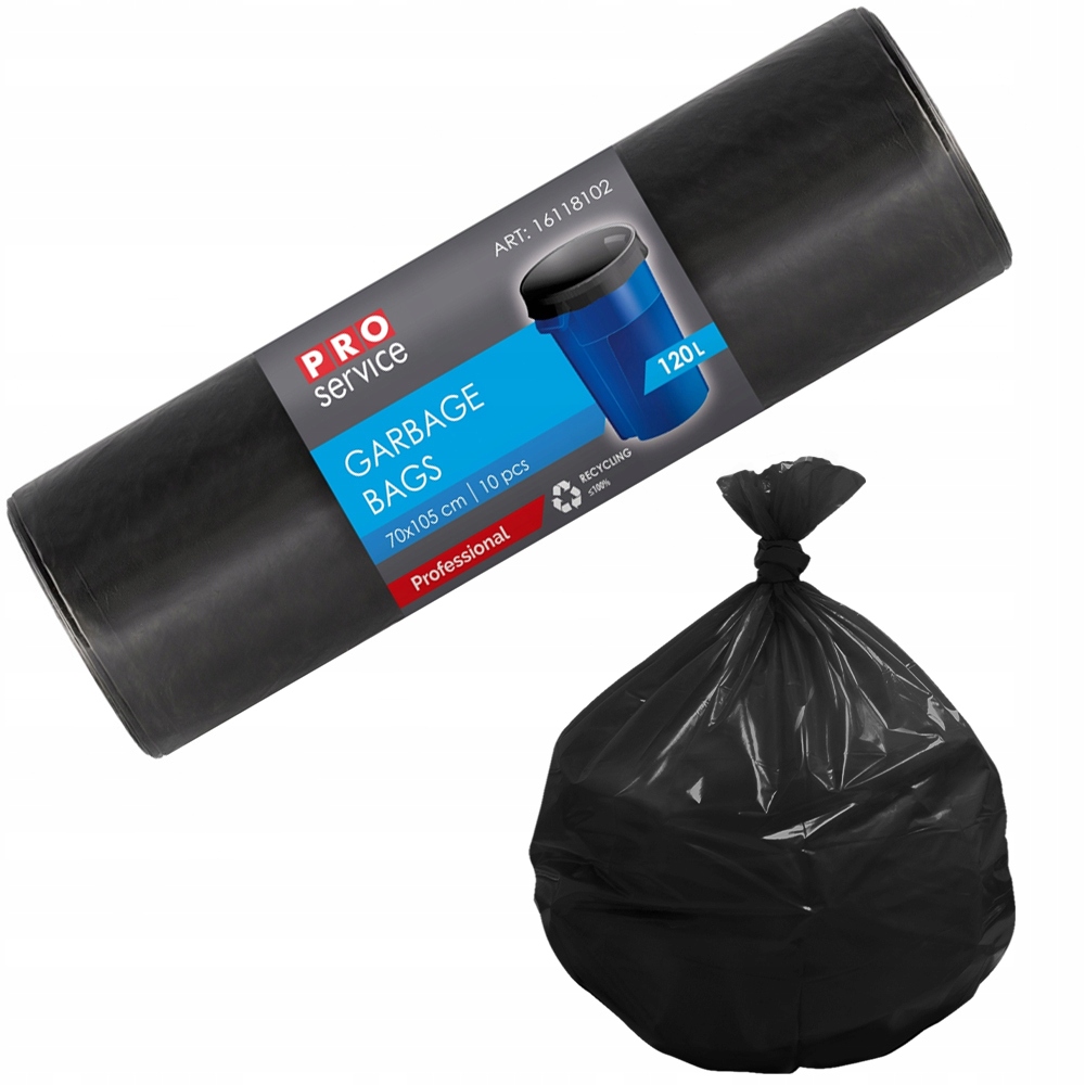 PRO Service Worki Na Śmieci Mocne Czarne Uniwersalne LDPE 120L 10 Sztuk