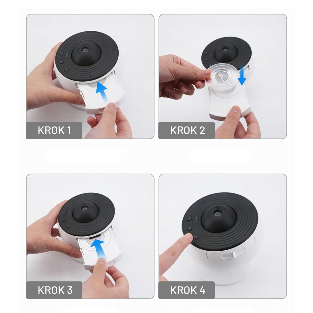 - Projekcja gwiazd i planet: Tworzy realistyczny obraz nieba pełnego gwiazd, planet i galaktyk na ścianach oraz suficie.