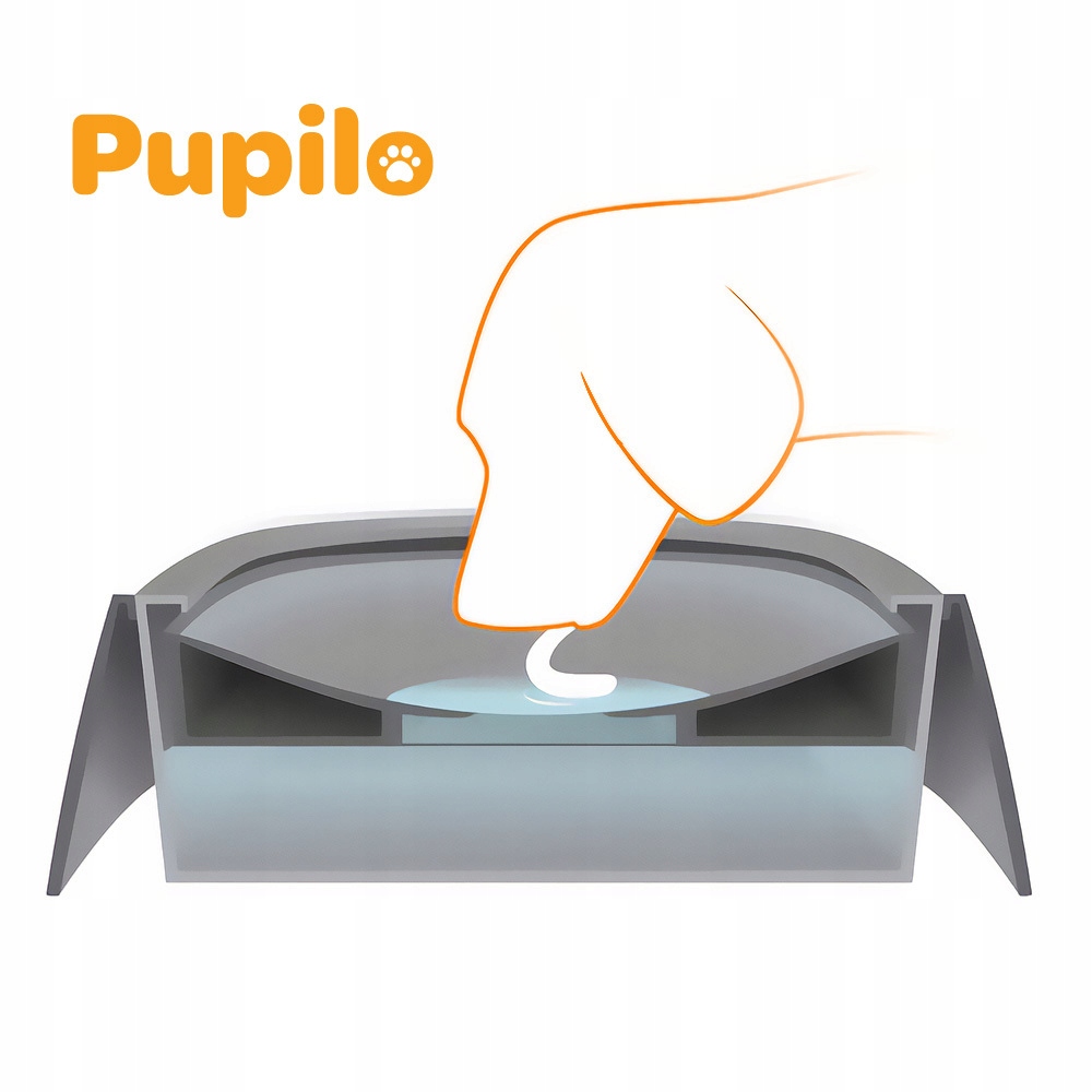 - Specjalna pokrywa ogranicza gromadzenie się kurzu i zabrudzeń w wodzie, dzięki czemu pupil pije zawsze czystą wodę.