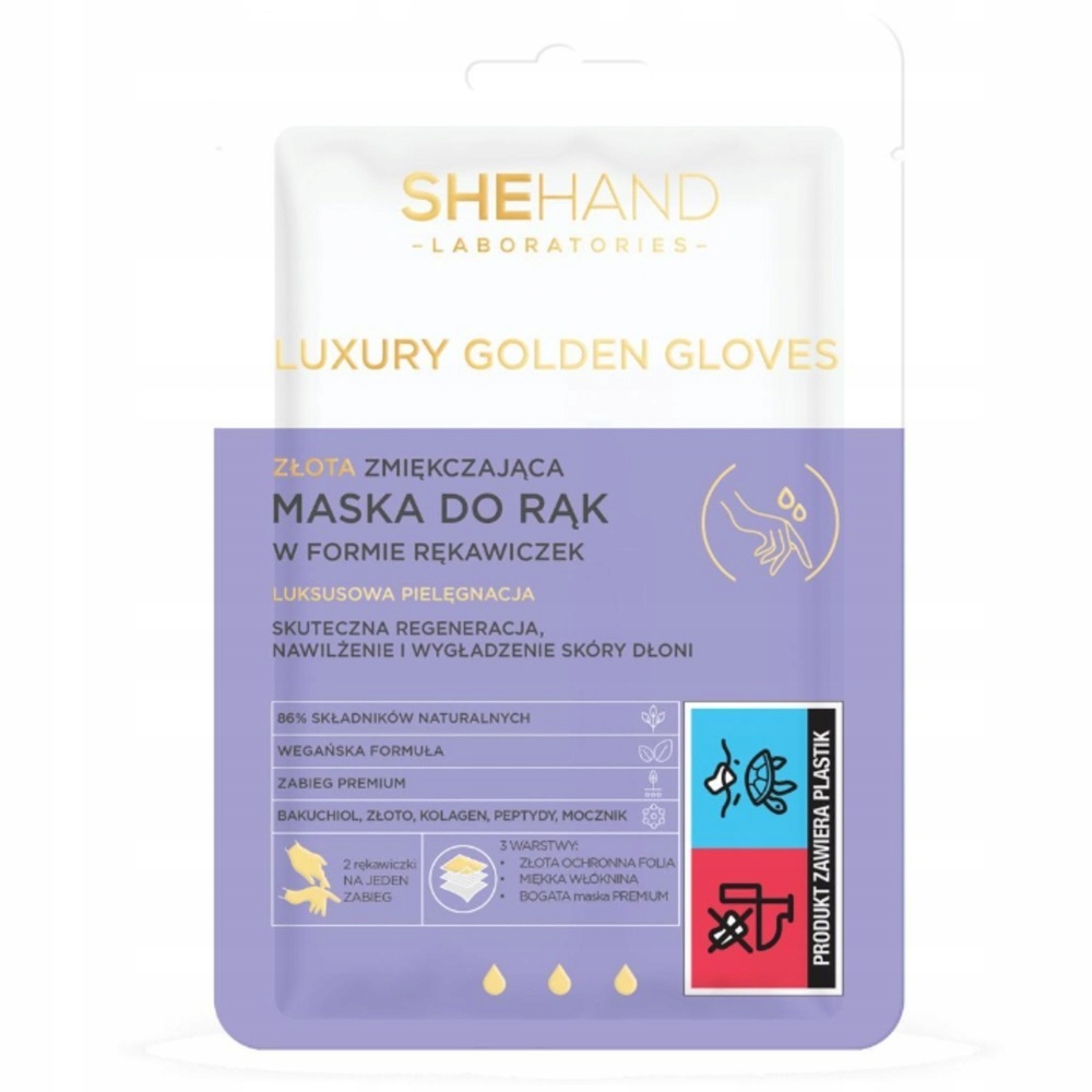 Odkryj moc regeneracji dla Twoich rąk z maską zmiękczająca od Shehand! Przygotuj się na unikalne doświadczenie pielęgnacyjne dla swoich dłoni ze zmiękczająca maska Luxury Golden Gloves od Shehand! Ekskluzywna maska do rąk w formie efektownych złotych rękawiczek to zabieg premium, który zapewni skórze twoich dłoni niezwykłą miękkość, aksamitną gładkość oraz zdrowy blask.
