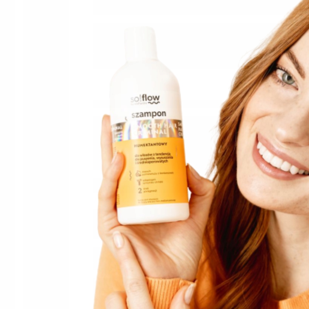 Podaruj Twoim włosom prawdziwe flow z szamponem humektantowym so!flow, którego formuła BEZ SLS skutecznie i delikatnie oczyści włosy i skórę głowy. Zawarte w szamponie betaina i pantenol nawilżą i przywrócą naturalną równowagę skalpu i kosmyków, a łagodzący aloes ułatwi rozczesywanie i doda im miękkości i blasku. Dodatek adaptogenu cytryńca chińskiego i soczysty zapach pomarańczy z kardamonem skutecznie wprawi w lepszy nastrój. Szampon doskonale sprawdzi się do włosów średnioporowatych.