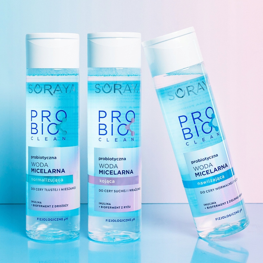 Seria Probio Clean oferuje trzy wody micelarne, tak, aby zadowolić każdy typ cery: