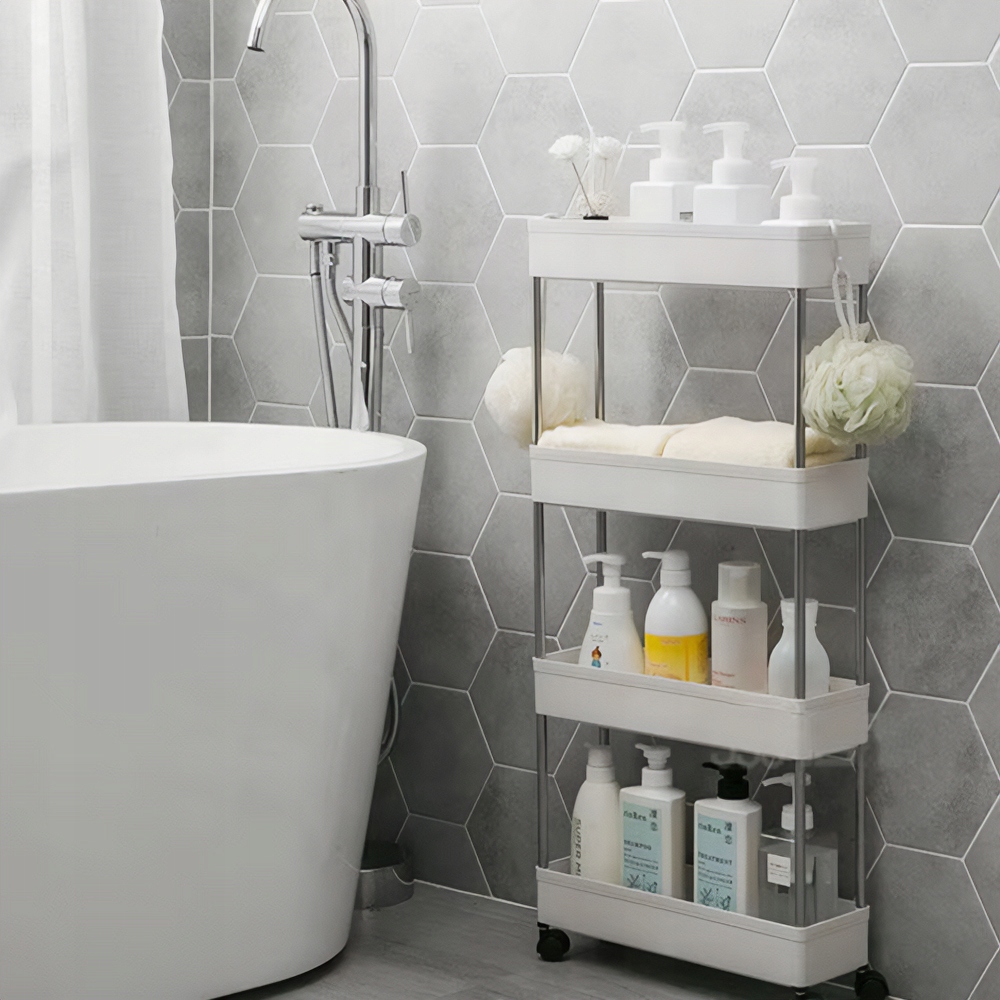Praktyczna czteropoziomowa półka na kółkach. Sprawdzi się świetnie w Twoim domu. Można przechowywać w nich rzeczy kuchenne, łazienkowe, a także drobne akcesoria. Dzięki uniwersalnemu designowi sprawdzi się świetnie w każdym wnętrzu.