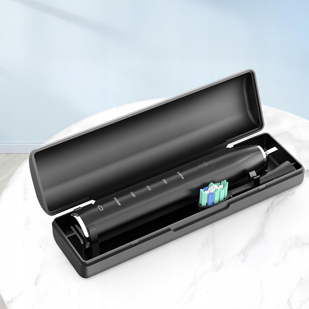 Elegancja i wyrafinowanie to najlepsze określenia dla sonicznej szczoteczki do zębów. Jej głęboka, półmatowa czerń, uzupełniona subtelnymi metalicznymi akcentami, przyciąga wzrok i nadaje jej unikalny charakter. Stworzona z myślą nie tylko o funkcjonalności, ale i estetyce, stanowi stylowy dodatek do codziennej rutyny higieny jamy ustnej, łącząc piękno z praktycznością.
