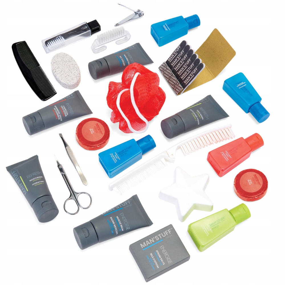 W zestawie znajdują się praktyczne kosmetyki, wykorzystywane przez panów podczas codziennej toalety. Ponadto każdy z panów, który otrzyma ten wyjątkowy adwentowy kalendarz, zyska możliwość perfekcyjnego dbania o swoją cerę i wygląd. W zestawie znajdują się m.in. żel pod prysznic, żel do mycia ciała i włosów, mydła czy żel do mycia twarzy. Pudełko zawiera także akcesoria: grzebień, pumeks, nożyczki, cążki, pilnik do paznokci czy szczoteczkę do mycia rąk, które wraz z kremem zapewnią skórze dłoni i paznokciom odpowiednią i profesjonalną pielęgnację. Dodatkowym elementem zestawu jest sól do kąpieli, która zapewni relaks i komfort, a także doskonale oczyści męską skórę. Sól ceniona jest również ze względu na swoje właściwości kojące.