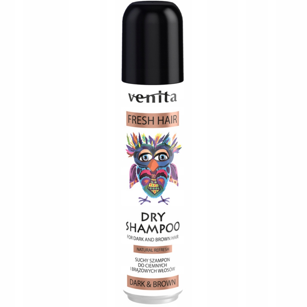 Venita Fresh Hair to suchy szampon stworzony specjalnie z myślą o włosach brązowych i ciemnych. Skutecznie redukuje sebum, przywraca świeżość fryzury. Dzięki lekkiej formule i zawartości pigmentów kolorystycznych, odświeża włosy, jednocześnie nie pozostawiając białych śladów. Idealny do stosowania między myciami, po treningu lub w podróży.