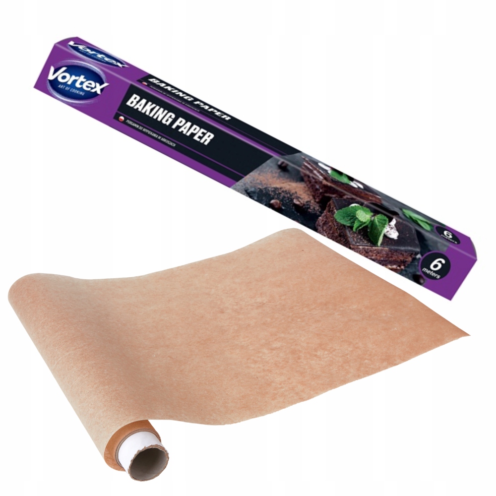 Brązowy papier do pieczenia marki Vortex to praktyczne rozwiązanie dla wszystkich miłośników domowych wypieków. Dzięki specjalnej powłoce silikonowej, ciasta i inne potrawy nie przywierają do blachy – bez potrzeby użycia tłuszczu.
