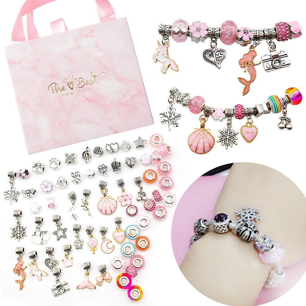 Zestaw Charms 63 Elementów Koralików Biżuterii Dla Dzieci 3 Bransoletki